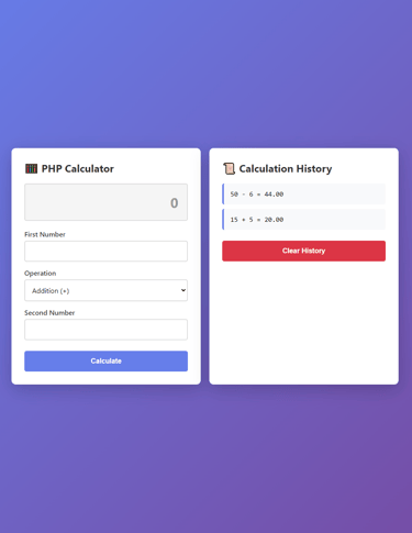 Built a full-featured calculator that performs basic arithmetic operations while maintaining a session-based history of the last 10 calculations. The application includes robust error handling (such as division by zero protection), displays results in real-time, and allows users to review and clear their calculation history.