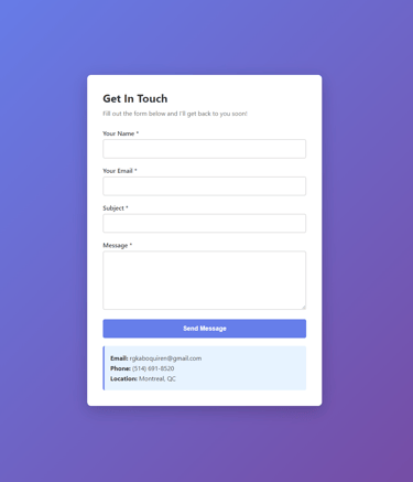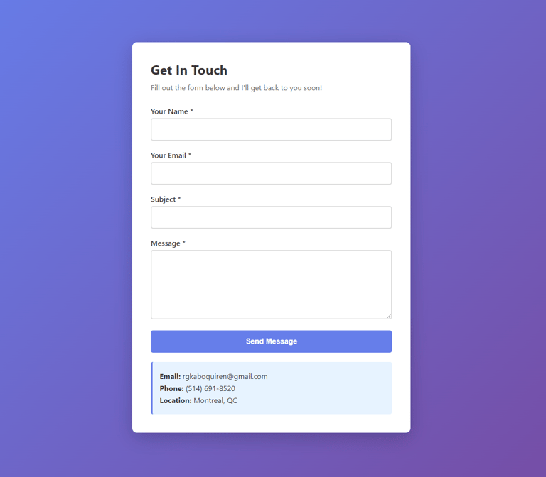 Developed a responsive contact form that demonstrates best practices in web security and user experience. The application validates all user inputs both client-side and server-side, implements XSS protection through data sanitization, and provides clear success/error messaging. Messages are securely stored in a text file with timestamps for future reference