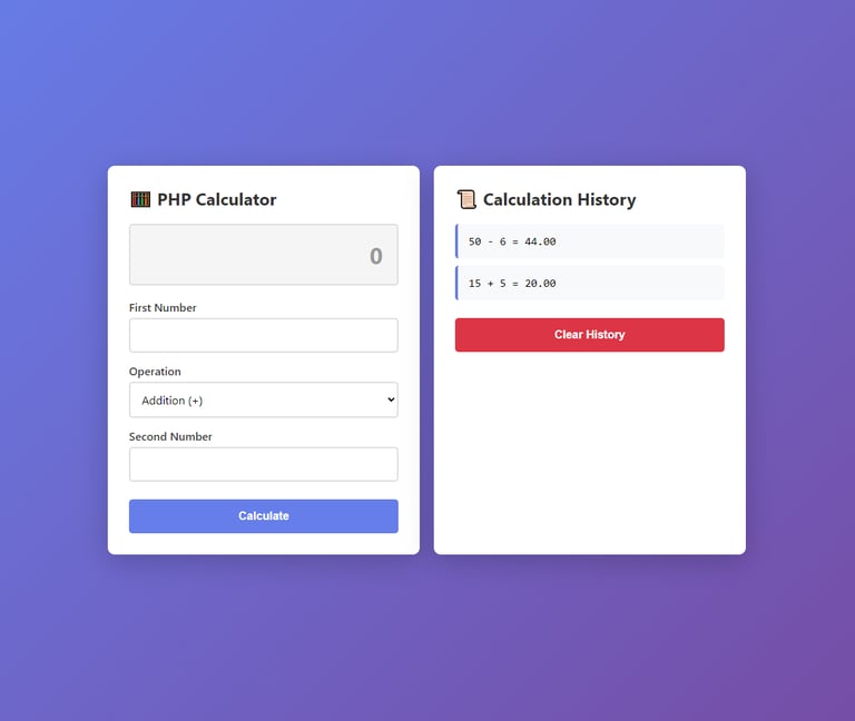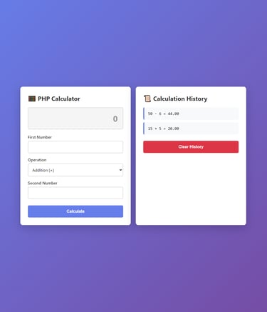 Built a full-featured calculator that performs basic arithmetic operations while maintaining a session-based history of the last 10 calculations. The application includes robust error handling (such as division by zero protection), displays results in real-time, and allows users to review and clear their calculation history.